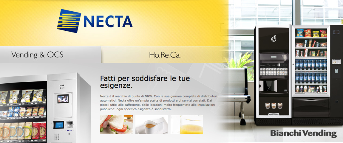 Brus Service offre il meglio della tecnologia prsente sul mercato dotando le proprie installaziuoni di macchine Necta e Bianchi Vending. Ognuna delle Aziende citate si distingue psia per l'altp grado di affidabilità, sia per la cura del design e dell'elettronica.